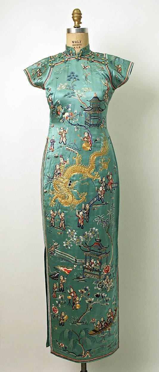 También, a inicios de los 2000 que se pusieron de moda prendas de clara inspiración oriental. Camisas cuello mao para el varón, vestidos y blusas qipao para la dama. En telas brillantes y bordadas que llegaron al retail a partir de inspiración en pasarelas, en el ciclo de la moda.